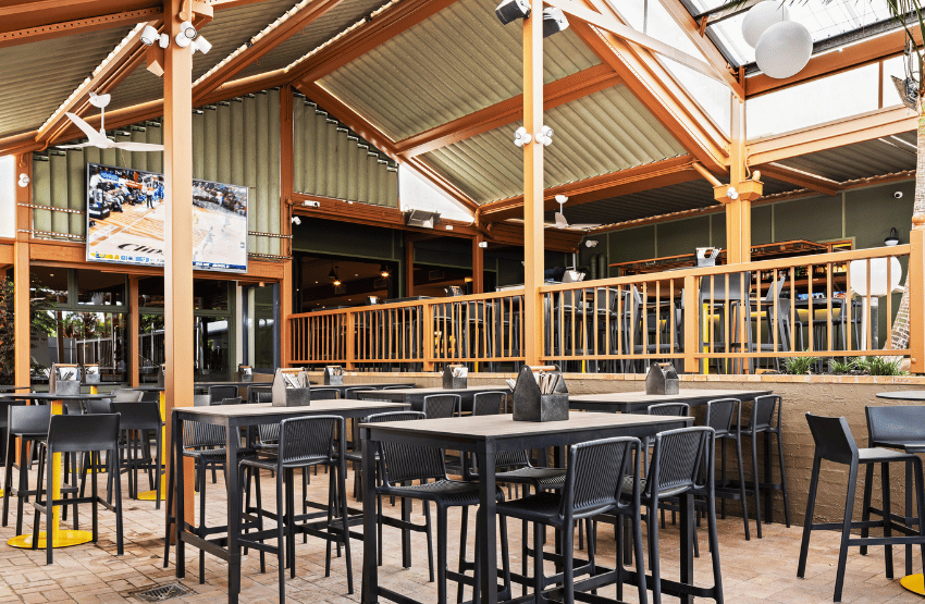 The Beer Garden offers a relaxed outdoor space with access to the bar and large sports screens, making it perfect for functions or casual get-togethers. Whether you’re hosting an event or enjoying a regular booking, it’s the ideal spot to unwind with friends.